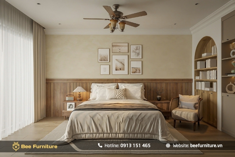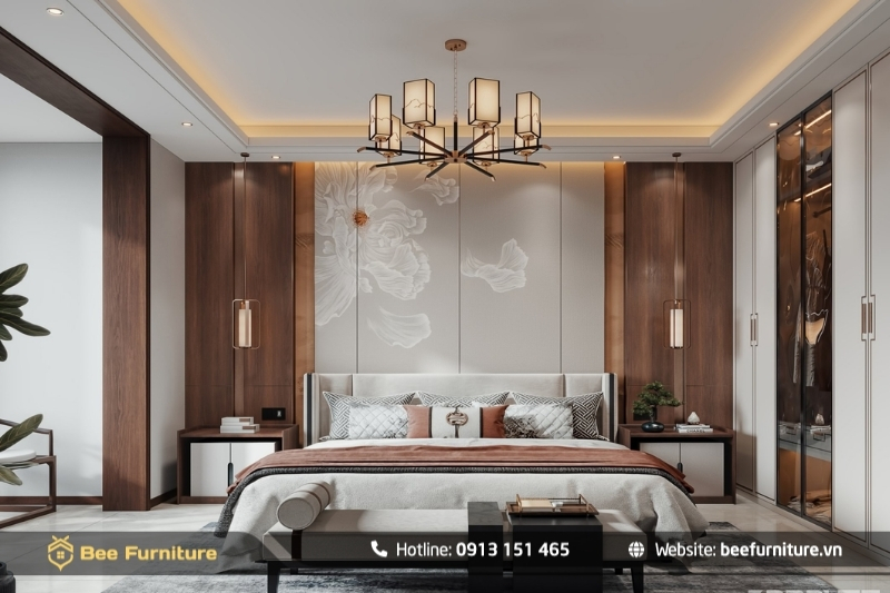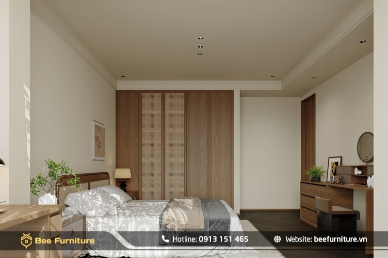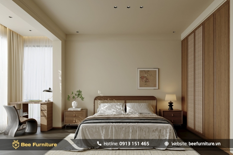 Mẫu 7: Thiết kế phòng ngủ theo phong cách indochine tối giản