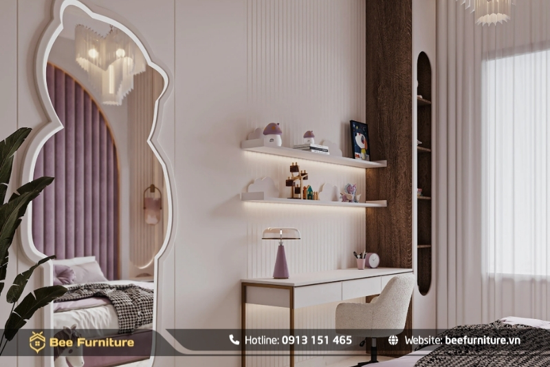 Tại Bee Furniture, chúng tôi ưu tiên khai thác sở thích riêng của trẻ để tạo nên không gian sống sinh động, ngộ nghĩnh và truyền cảm hứng. Mỗi thiết kế không đơn thuần là sự sắp xếp nội thất mà còn là cách khơi gợi trí tưởng tượng, giúp bé phát triển tư duy và cảm xúc trong môi trường gần gũi, an toàn.
