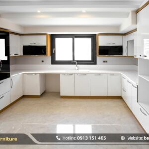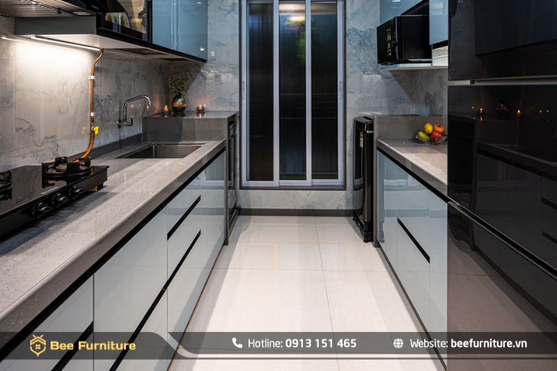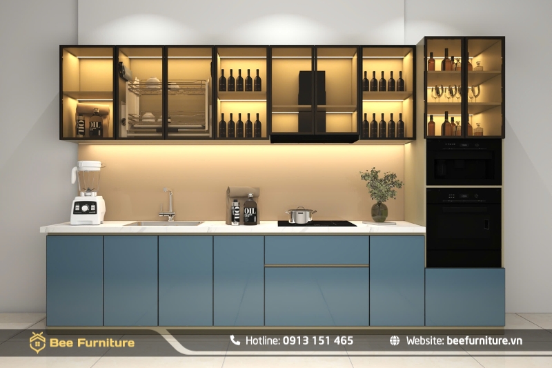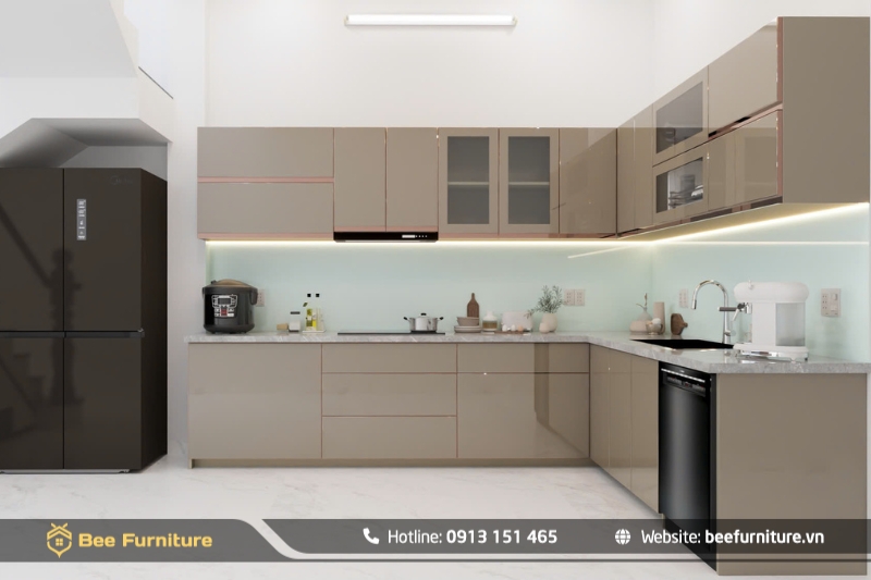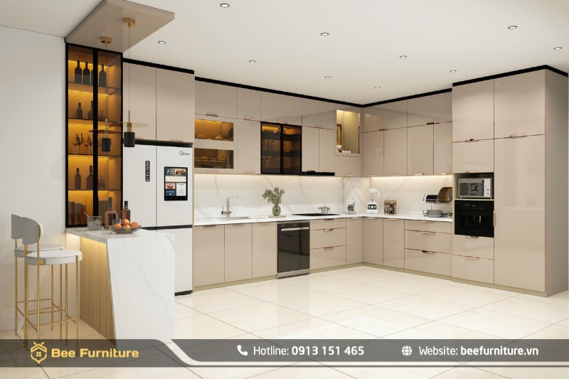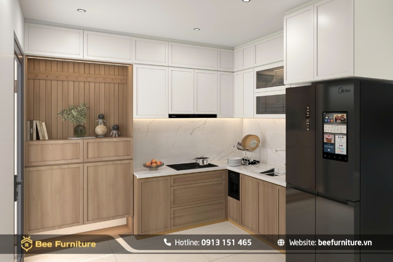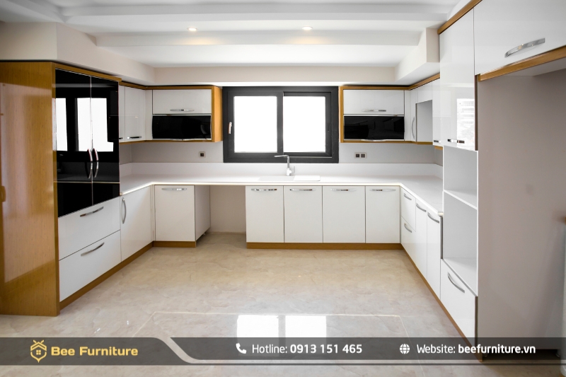 - Linh hoạt trong mọi không gian: Từ căn hộ nhỏ cho đến biệt thự cao cấp, Bee Furniture có thể sản xuất tủ bếp theo đúng bản vẽ thiết kế, đáp ứng đa dạng yêu cầu về kích thước, chất liệu và phong cách.