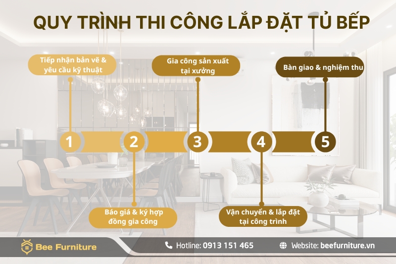 Quy trình thi công lắp đặt tủ bếp tại Bee Furniture