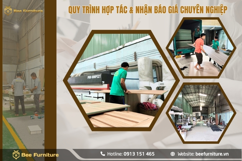 - Tiếp nhận & báo giá nhanh chóng: Đối tác chỉ cần gửi bản vẽ hoặc yêu cầu, Bee Furniture sẽ phản hồi báo giá chi tiết trong vòng 24 giờ.