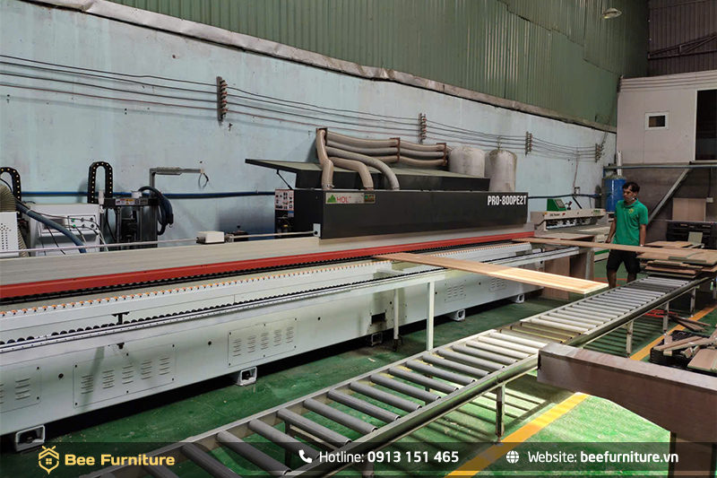 Bee Furniture tự hào là xưởng gia công nội thất uy tín tại TP.HCM, với diện tích hơn 600m² và hệ thống máy móc hoàn toàn mới: máy cắt CNC, máy dán cạnh keo PUR, máy khoan cam, máy dán cạnh 45 độ… cùng nhiều thiết bị hiện đại khác.