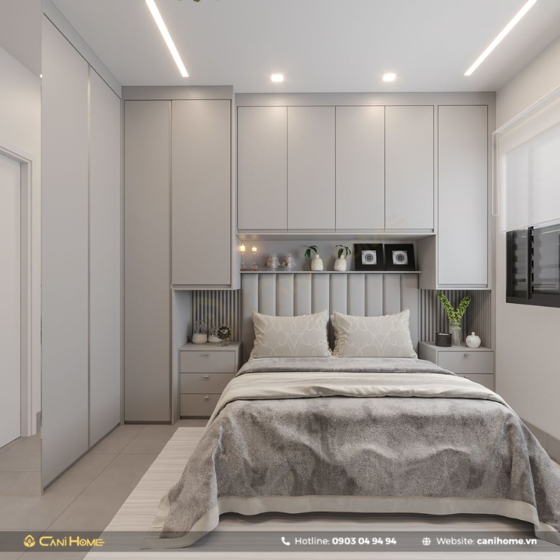 Chọn kích thước phù hợp: Việc khảo sát và xác định đúng kích thước phòng ngủ sẽ giúp quá trình thi công diễn ra chính xác, hạn chế sai lệch và đảm bảo giường, tủ vừa vặn với không gian. Nhờ đó tổng thể phòng ngủ trở nên hài hòa, thuận tiện trong quá trình sử dụng.