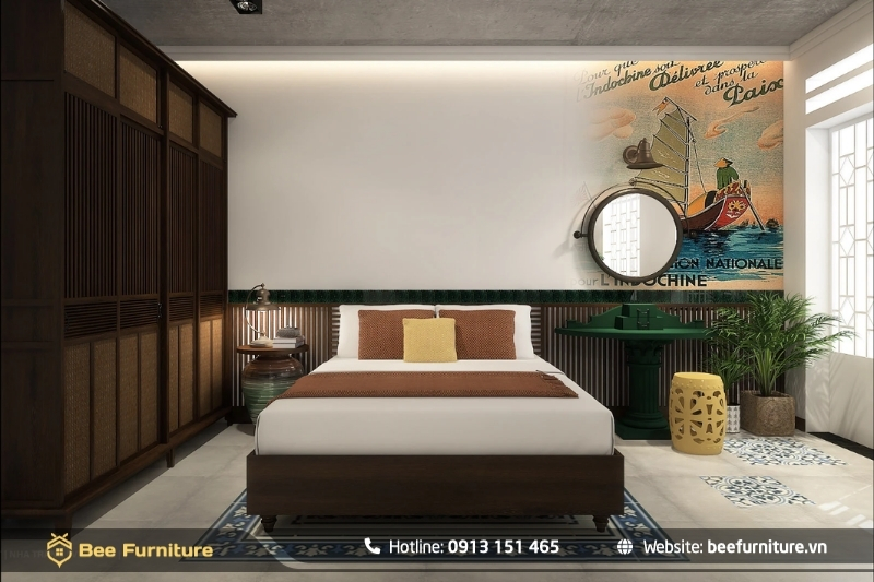 Mẫu căn hộ 2 phòng ngủ đẹp theo phong cách Indochine