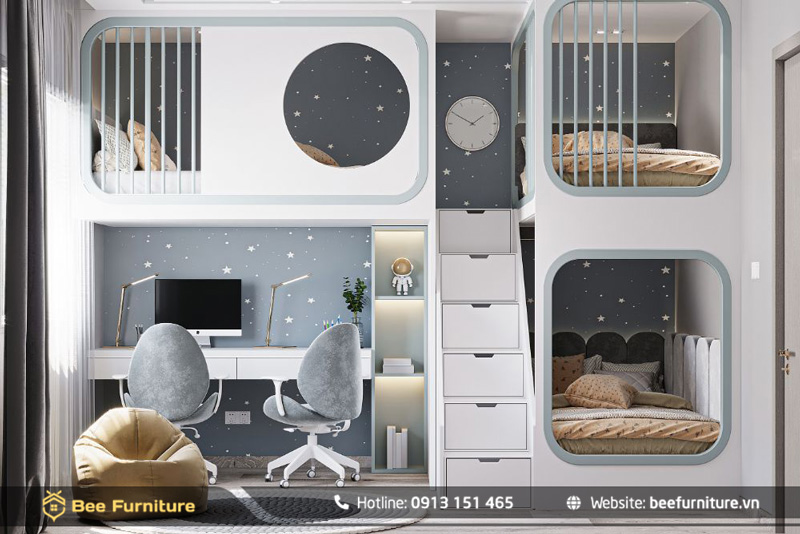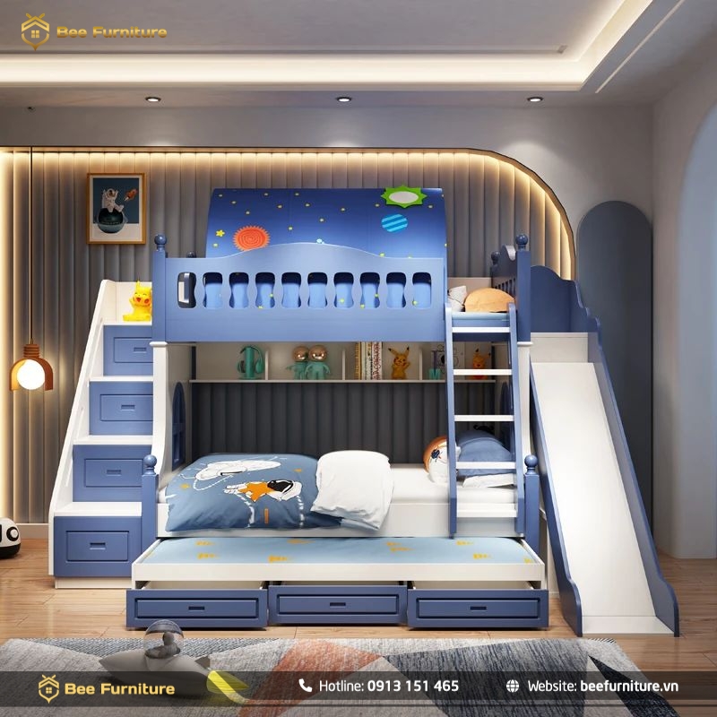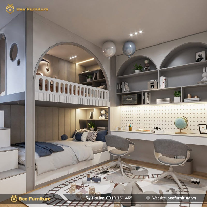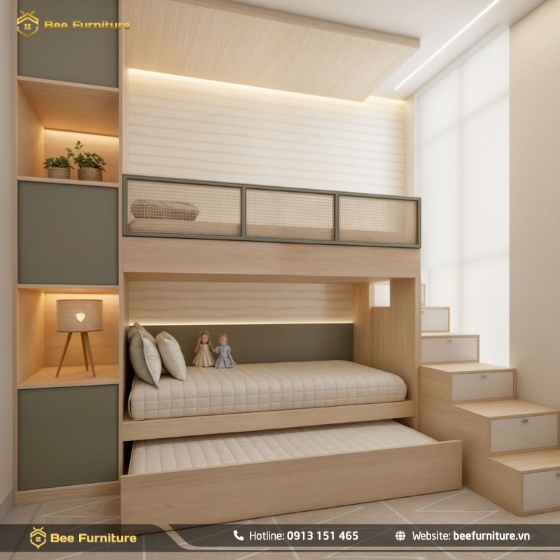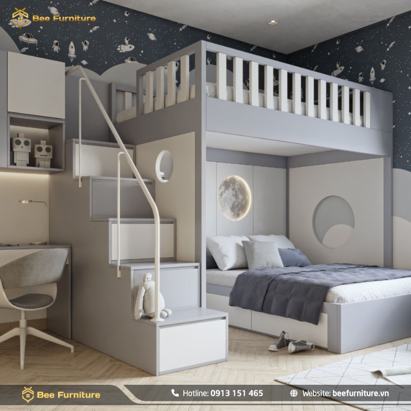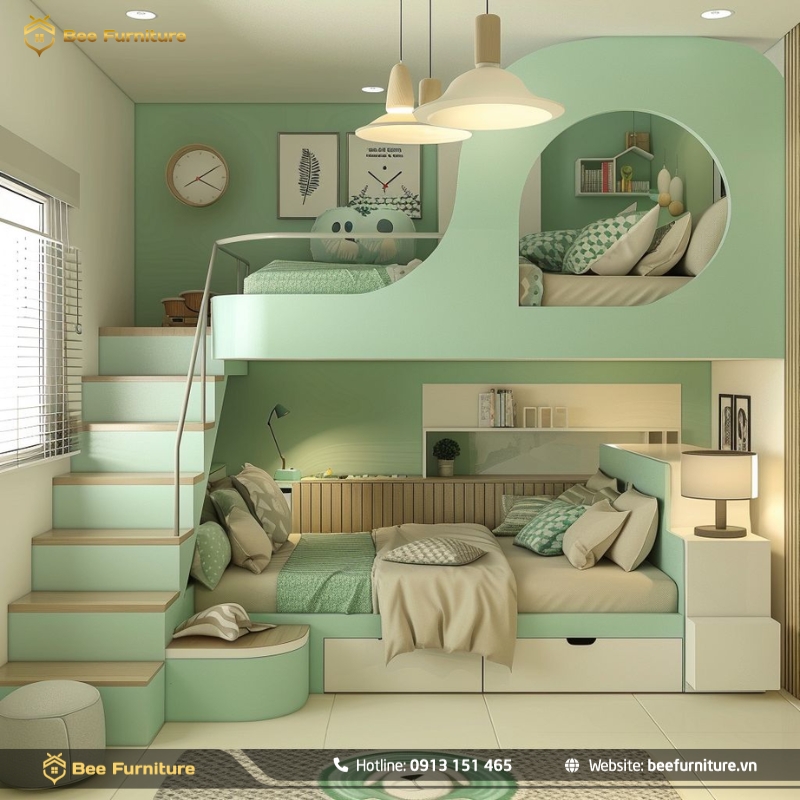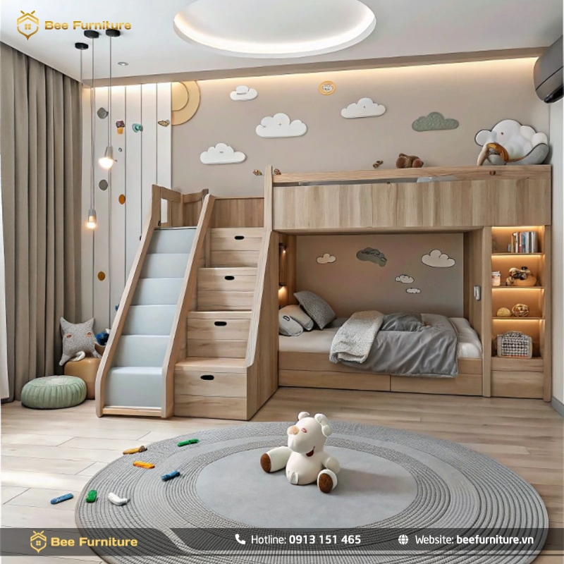 Việc lựa chọn giường tầng trẻ em phù hợp không chỉ giúp tối ưu diện tích phòng mà còn mang đến cho bé một không gian riêng an toàn, tiện nghi và đầy cảm hứng. Hy vọng bài viết “Tổng hợp các mẫu giường tầng trẻ em an toàn và thẩm mỹ” từ Bee Furniture đã mang đến cho bạn những gợi ý hữu ích để lựa chọn đúng mẫu giường cho bé. Nếu bạn cần tư vấn chi tiết hơn về thiết kế, giá thành hoặc giải pháp tối ưu không gian, đừng ngần ngại liên hệ ngay với chúng tôi để được hỗ trợ miễn phí nhé.