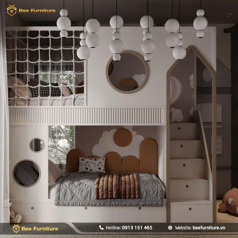 Không gian phòng ngủ của bé luôn cần sự an toàn, tiện nghi và thẩm mỹ. Trong đó, giường tầng trẻ em trở thành lựa chọn lý tưởng để tối ưu diện tích, tạo góc nghỉ ngơi thoải mái và mang lại sự hứng thú cho trẻ. Sau đây là “Tổng hợp 20+ mẫu giường tầng trẻ em an toàn và thẩm mỹ” sẽ giúp bạn khám phá những thiết kế đẹp, chắc chắn, phù hợp nhiều độ tuổi, đồng thời gợi ý cách chọn mẫu giường hài hòa với không gian sống của gia đình.
