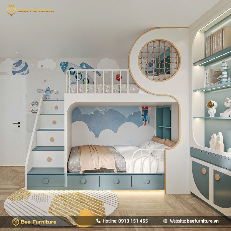 Phù hợp với: Gia đình có bé trai, muốn phòng ngủ mang phong cách năng động, cá tính.