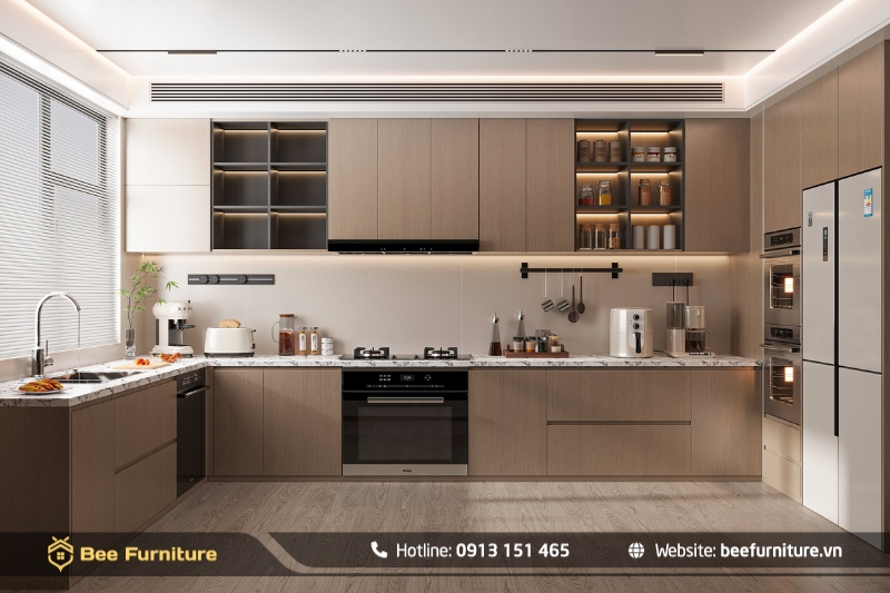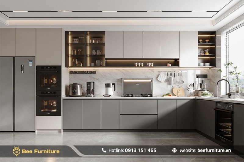 Hiện nay tủ bếp chữ L được xem là giải pháp hoàn hảo cho căn bếp hiện đại nhờ thiết kế khoa học, tối ưu diện tích và mang lại vẻ đẹp tinh tế. Với không gian lưu trữ rộng rãi, đa dạng chất liệu cùng nhiều mẫu mã phong phú, mẫu tủ này không chỉ giúp việc nấu nướng trở nên tiện nghi hơn mà còn tôn lên phong cách sang trọng, hiện đại và đẳng cấp cho ngôi nhà của bạn. Cùng Bee Furniture tham khảo ngay 60+ Mẫu tủ bếp đẹp hình chữ L chuẩn thiết kế 2025.