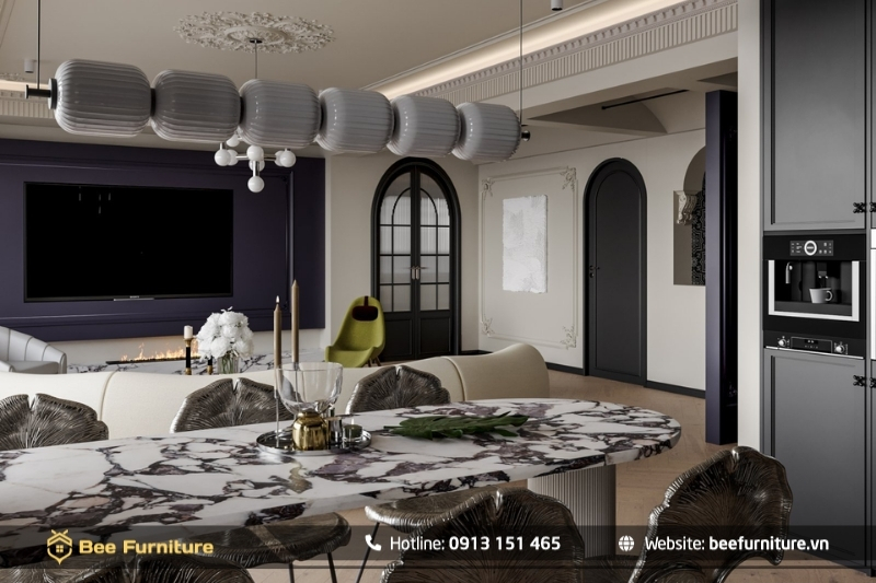 Thiết kế nội thất nhà phố đẹp, hiện đại theo phong cách tân cổ điển