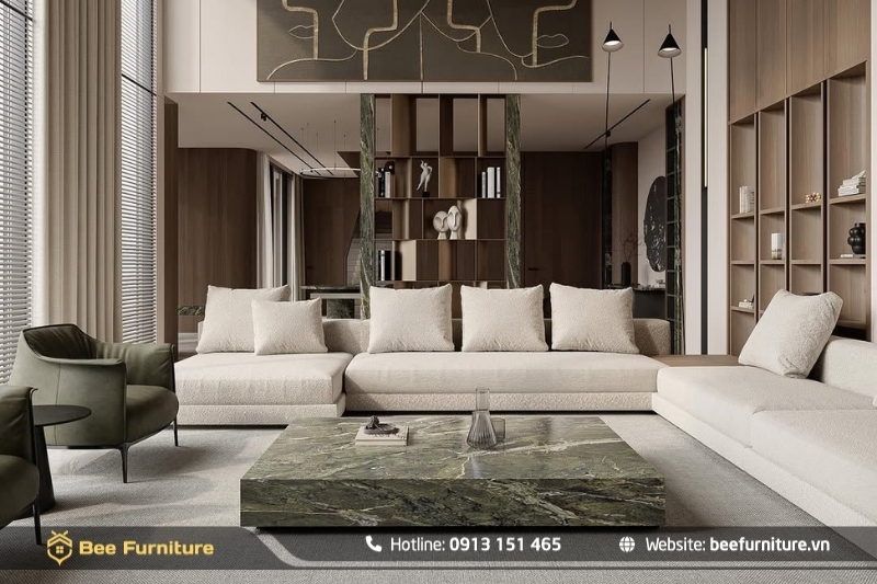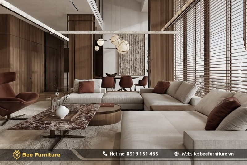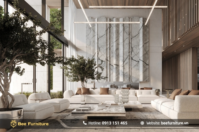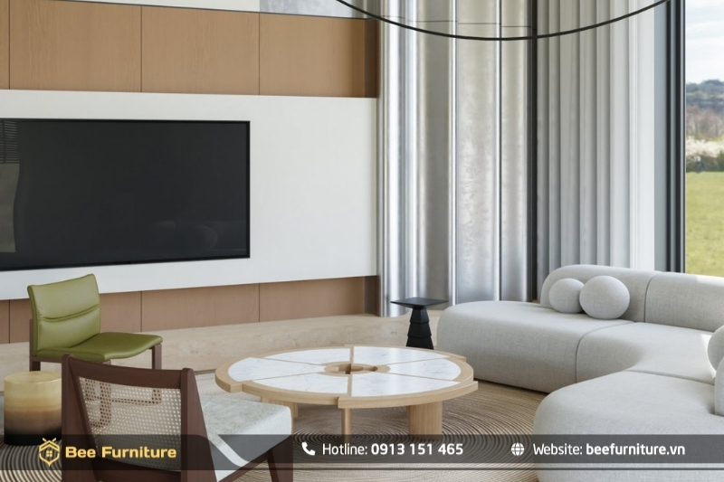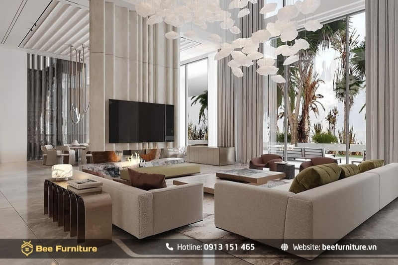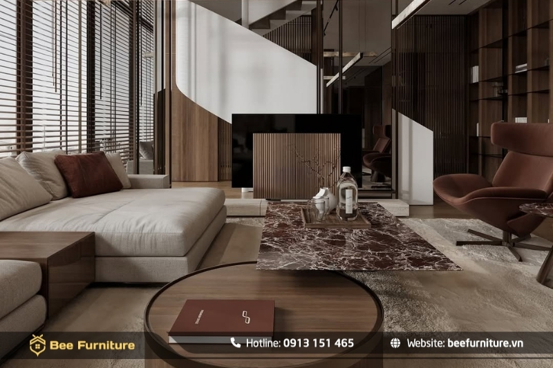 Phòng khách không chỉ là không gian sinh hoạt chung mà còn là “bộ mặt” đại diện cho phong cách sống của gia chủ. Chính vì vậy, trong mọi dự án thiết kế từ nhà phố đến căn hộ chung cư. Bee Furniture luôn đặc biệt chú trọng đến việc tối ưu không gian phòng khách. Mỗi chi tiết từ chất liệu, màu sắc đến ánh sáng và kiểu dáng nội thất để đảm bảo sự hài hòa giữa tính thẩm mỹ và công năng sử dụng. Giúp mang đến một không gian tiếp đón tinh tế, tiện nghi và đậm dấu ấn cá nhân.