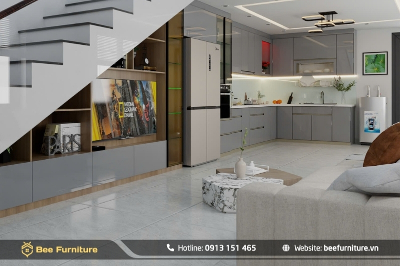Phòng bếp là nơi gắn kết các thành viên qua từng bữa ăn, là “trái tim” của tổ ấm. Do đó, trong thiết kế nội thất nhà phố, không gian bếp cần mang đến cảm giác ấm cúng, gần gũi nhưng vẫn đảm bảo tính tiện nghi. Tại Bee Furniture, chúng tôi ứng dụng phong cách thiết kế tối giản kết hợp giải pháp bố trí thông minh, giúp tối ưu diện tích và công năng sử dụng. Mỗi căn bếp được tạo nên đều hướng tới sự hiện đại, tinh tế và thuận tiện – nơi khơi nguồn cảm hứng cho những bữa cơm gia đình trọn vẹn yêu thương.